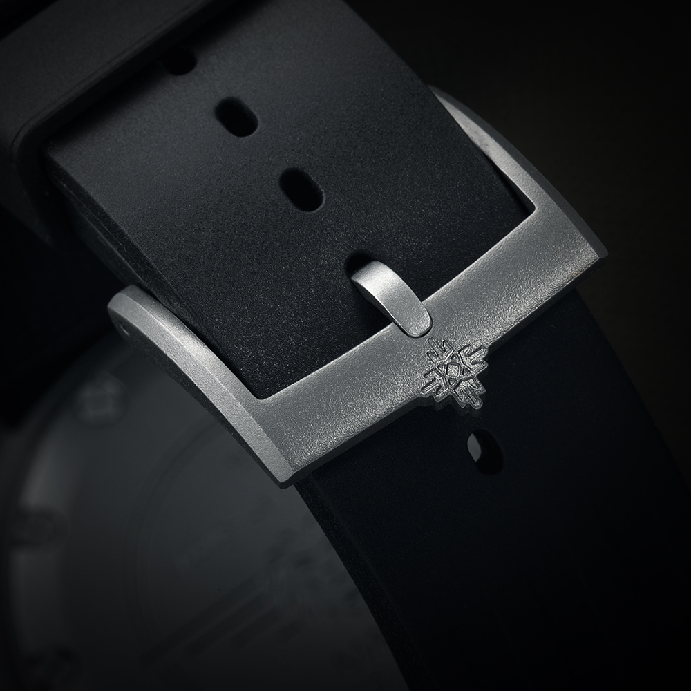 Lekkość i komfort noszenia dość masywnej koperty zapewnia tytan — materiał, który wyróżnia się nie tylko swoją lekkością i wytrzymałością, ale także atrakcyjnym wyglądem i solidną dawką charyzmy.