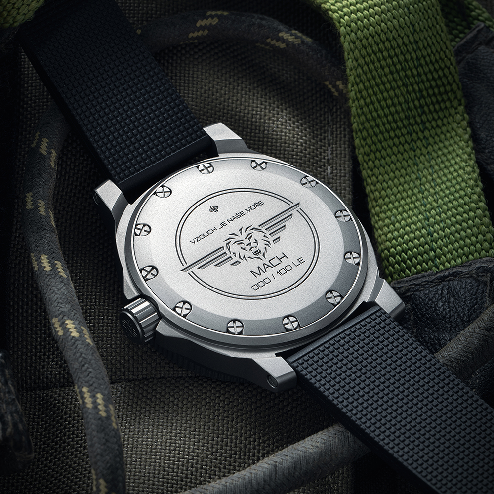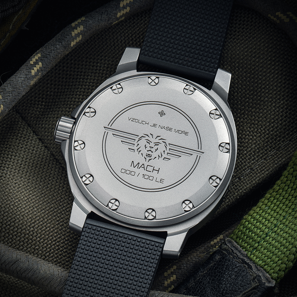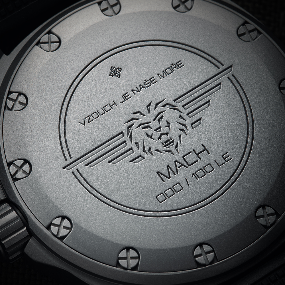 Dekiel zegarka zdobi wizerunek lwa oraz motto: Powietrze to nasze morze. Model doskonale uzupełnia kauczukowy pasek. Na boku koperty znajduje się napis MACH — hołd dla wybitnego fizyka Ernsta Macha, urodzonego na ówczesnym terytorium Brna. Jednostka prędkości w lotnictwie, definiowana jako stosunek prędkości obiektu do prędkości dźwięku, została nazwana na jego cześć. Edycja jest limitowana do 100 sztuk.