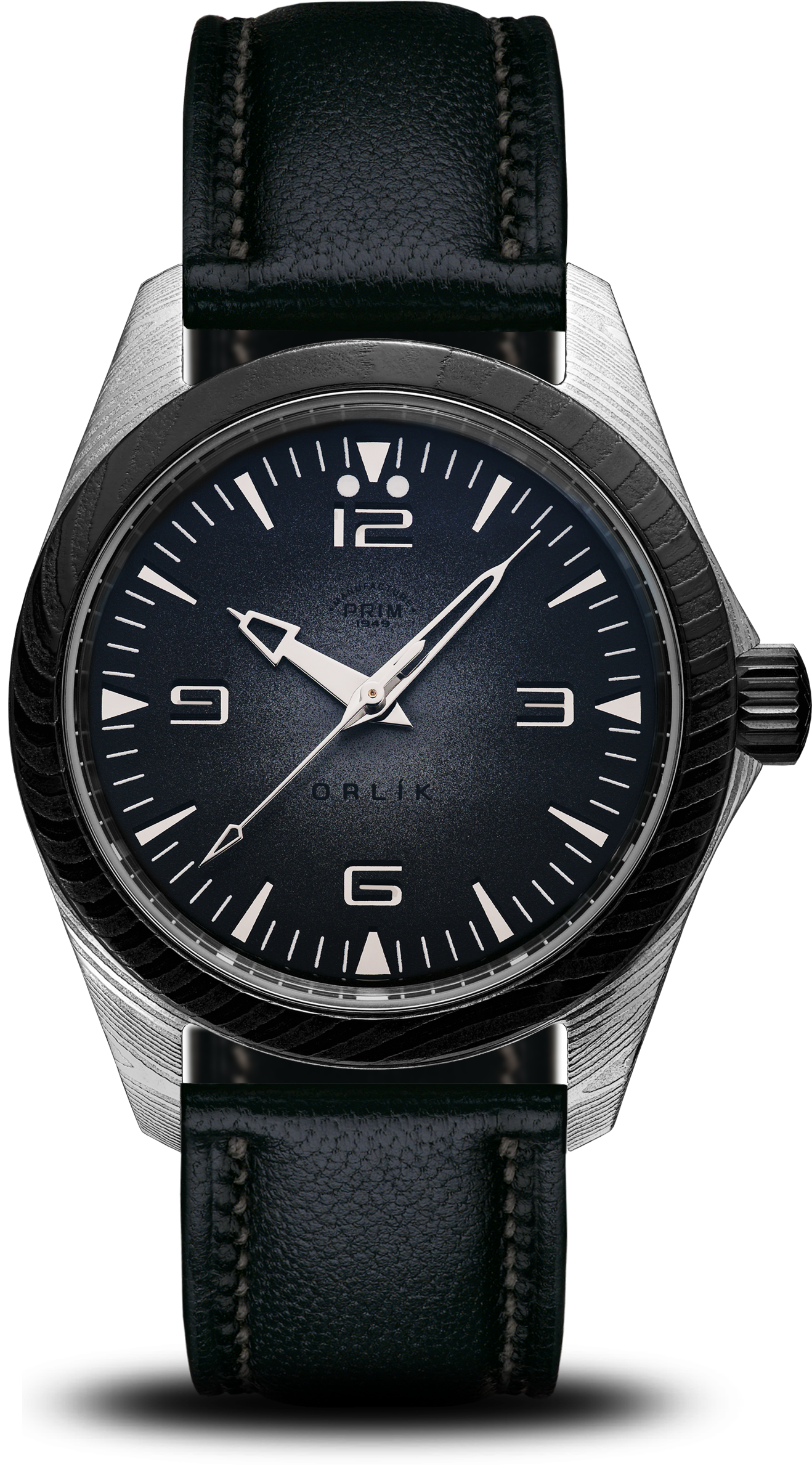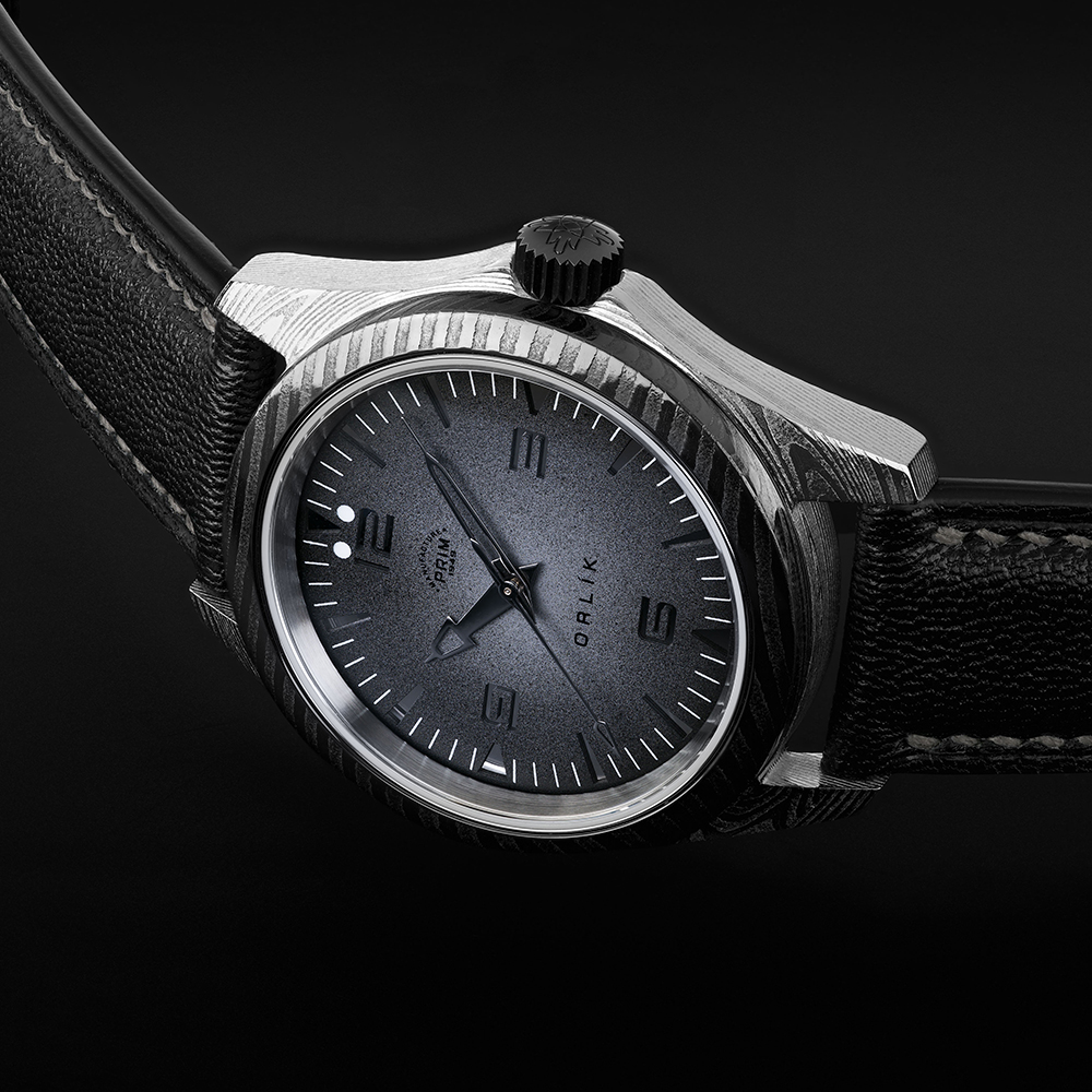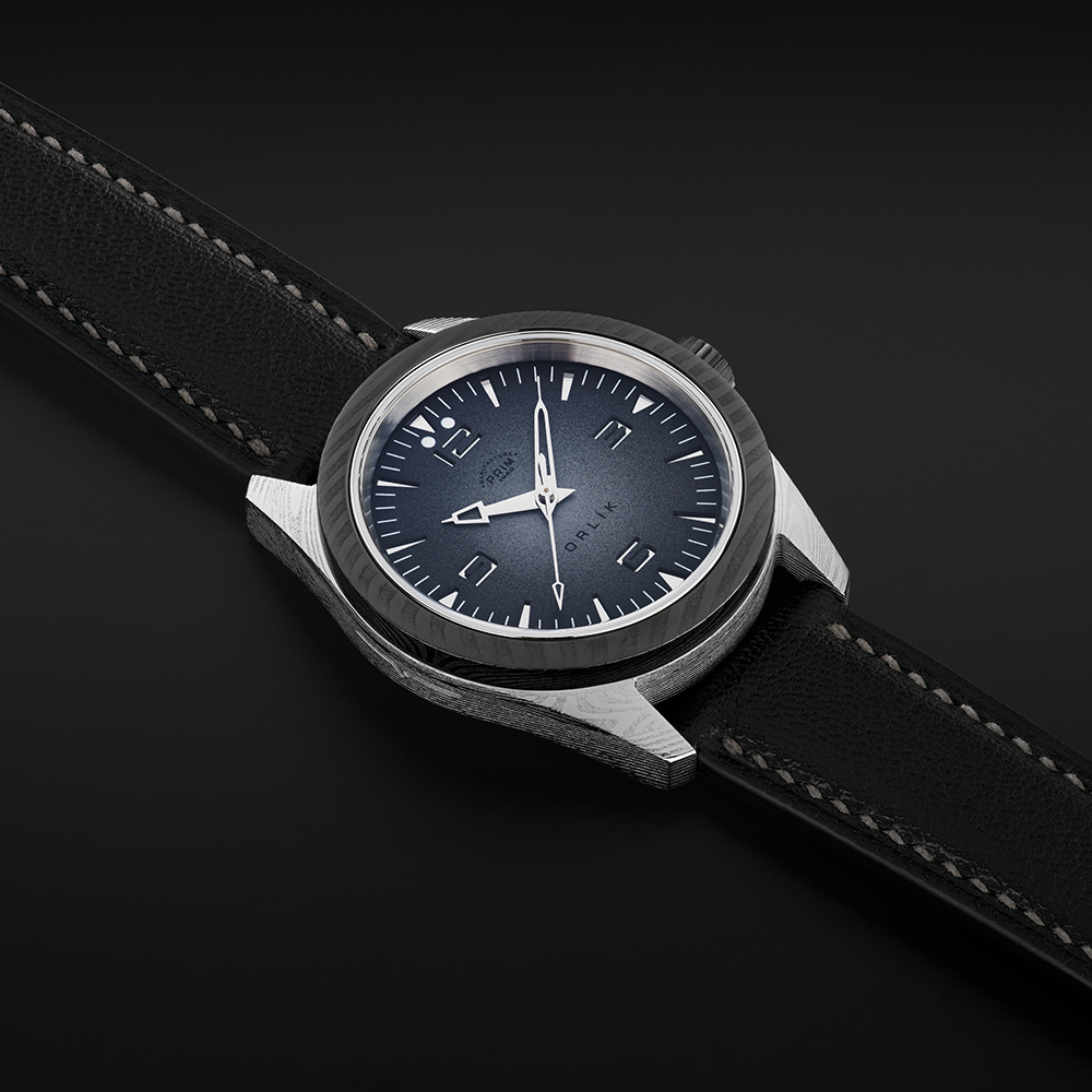 Sportovně elegantní model PRIM ORLÍK 38 DAMAŠEK LE jako první z této řady staví styl a vzhled na stejnou příčku jako funkčnost a odolnost. Evokuje DNA původních armádních hodinek, doplňuje ho ale nádech současnosti a luxusu. Na zápěstí budí pozornost charismatickým tmavým kroužkem ze stejného materiálu, jako je pouzdro a spona. Jeho úkolem je zdůraznit osobnost samotného nositele. Stává se tématem hovoru.