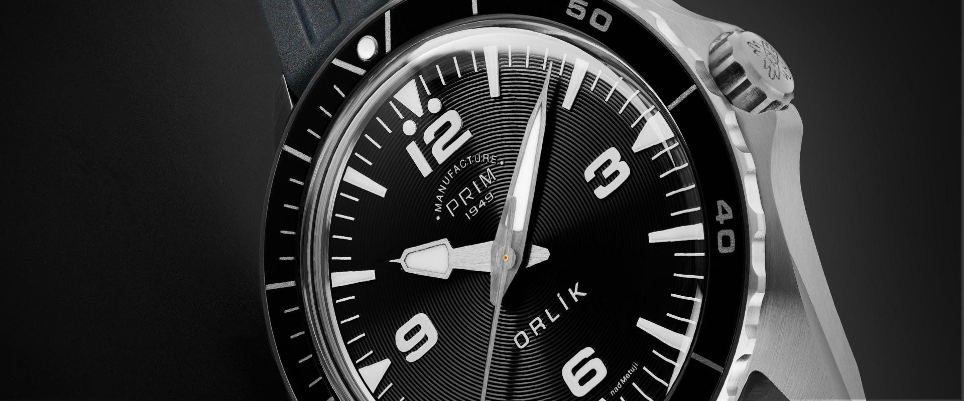 PRIM ORLÍK III je symbolem odolnosti i v náročných podmínkách. Stejně tak, díky komfortu při nošení, doplňuje většinu běžných outfitů a působí velmi charismaticky. Orlík III posunul hranice vodotěsnosti a potvrdil jeho původní poslání hodinek pro armádní potápěče. Tento model je v otevřené edici.