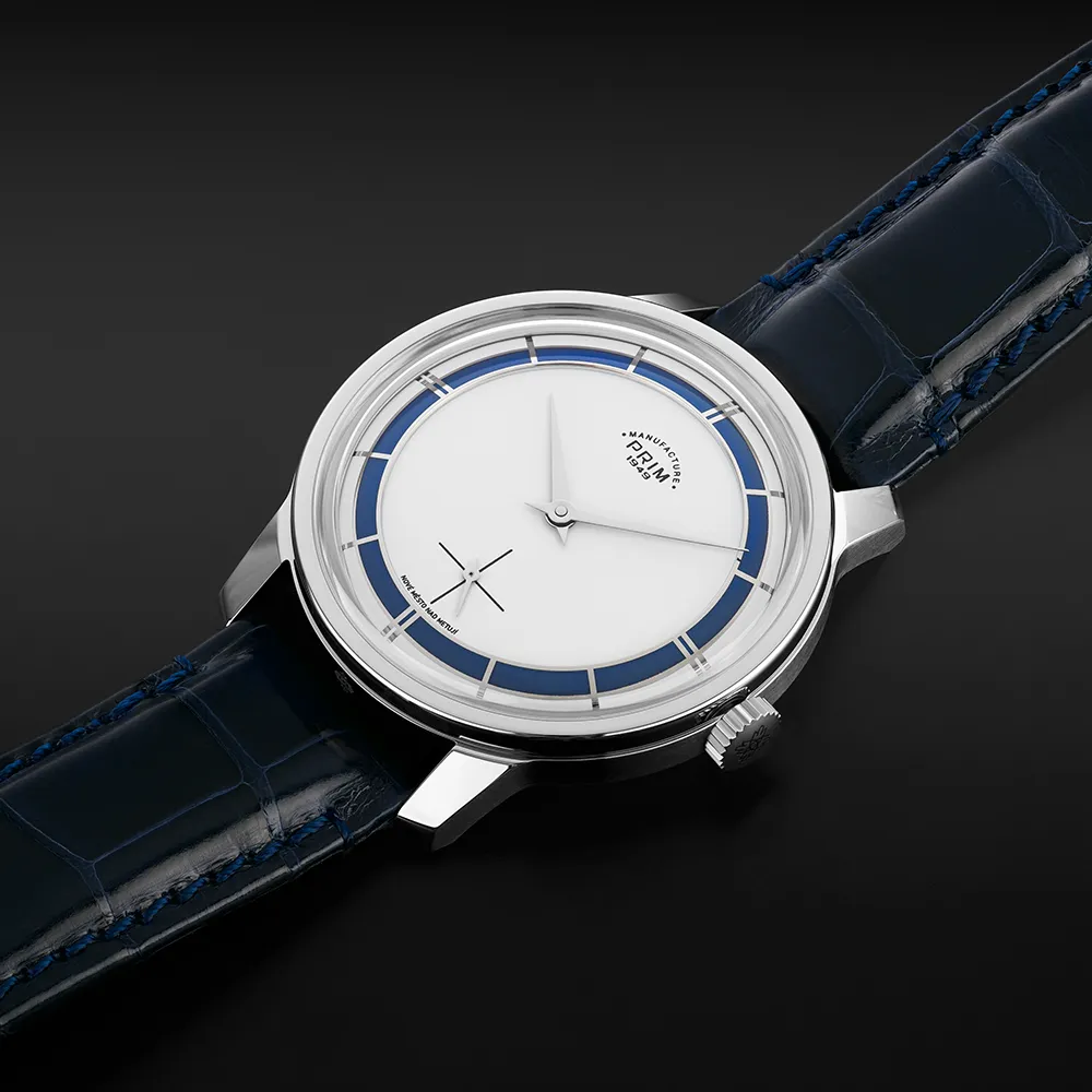 PRIM TRAKTOR v této otevřené edici okouzlí vším, jako ostatní „traktory“. Skládaným číselníkem s nápadným kontrastním okružím, tentokrát v příjemné námořnické modré barvě. Ocelové tělo hodinek elegantně ladí s ručkami stříbrné barvy a jemně naznačenými indexy. Mimostředná vteřinová ručka umístěná do pomyslného kříže odkazuje na původní vzhled a minimalismus tohoto modelu.