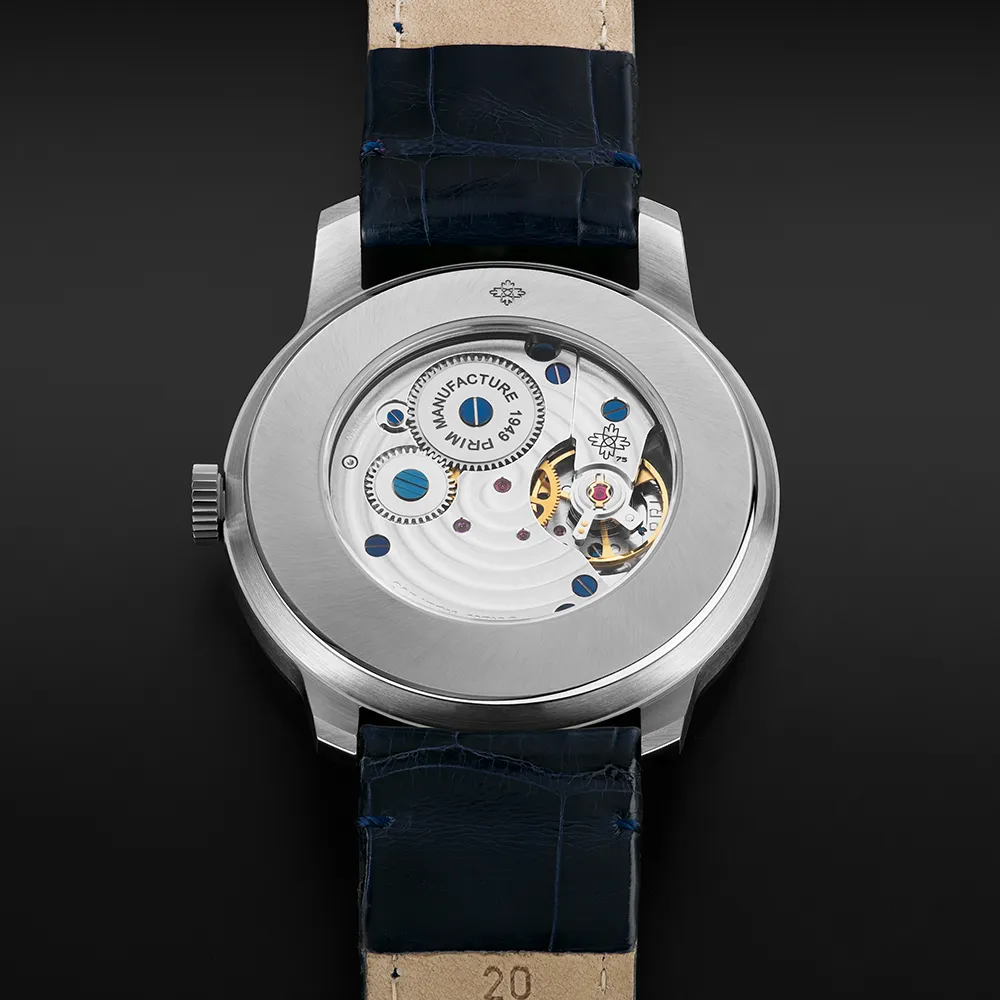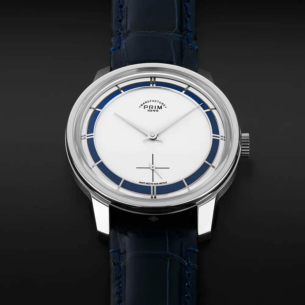 PRIM TRAKTOR je pokračováním společenského modelu, jehož design nikdo nikdy nepřekonal. Provedení v modré barvě, která je nanášena ručně, působí elegantně a snadno se kombinuje s oblečením. S tímto modelem, který lze snadno využít k dennímu použití, vzbudíte pozornost nejen prokazatelnými detaily precizní ruční práce. Mimostředná vteřinová ručka v minimalistickém provedení potvrdí vkus a cit pro design nositele klasických „traktorů“.