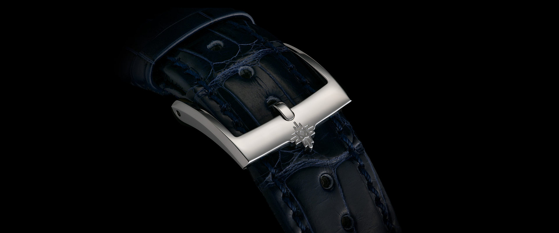 Esteticky čistý design, ocelové pouzdro ladící s ručkami stříbrné barvy a kontrastní modré kolo typické pro tento model. Doladění barvy kvalitního koženého řemínku, jehož spona nese piktogram, dodává celému modelu vysoce luxusní nádech.