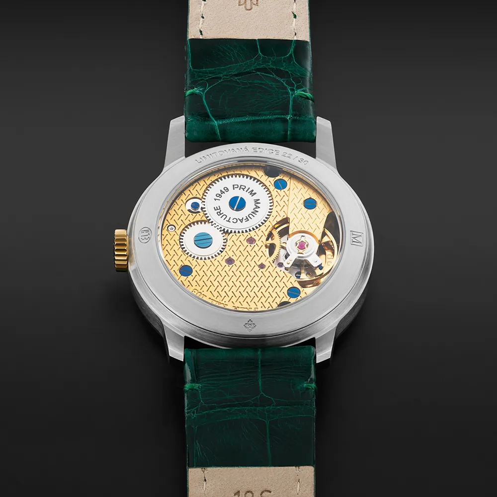 Či už je k videniu v akomkoľvek prevedení, ako limitovaná alebo otvorená edícia, zaujme na prvý pohľad. Mimostredná sekundová rúčka a typické farebné okružie sú precíznym odtlačkom práce hodinárov z manufaktúry v Novom Meste nad Metují. Samozrejmosťou je najvyšší typ strojčeka, a to inhouse kaliber s ručným náťahom, vyrábaný aj v manufaktúre. A pretože je na čo sa pozerať, mávajú „traktory“ priehľadné dýnko.